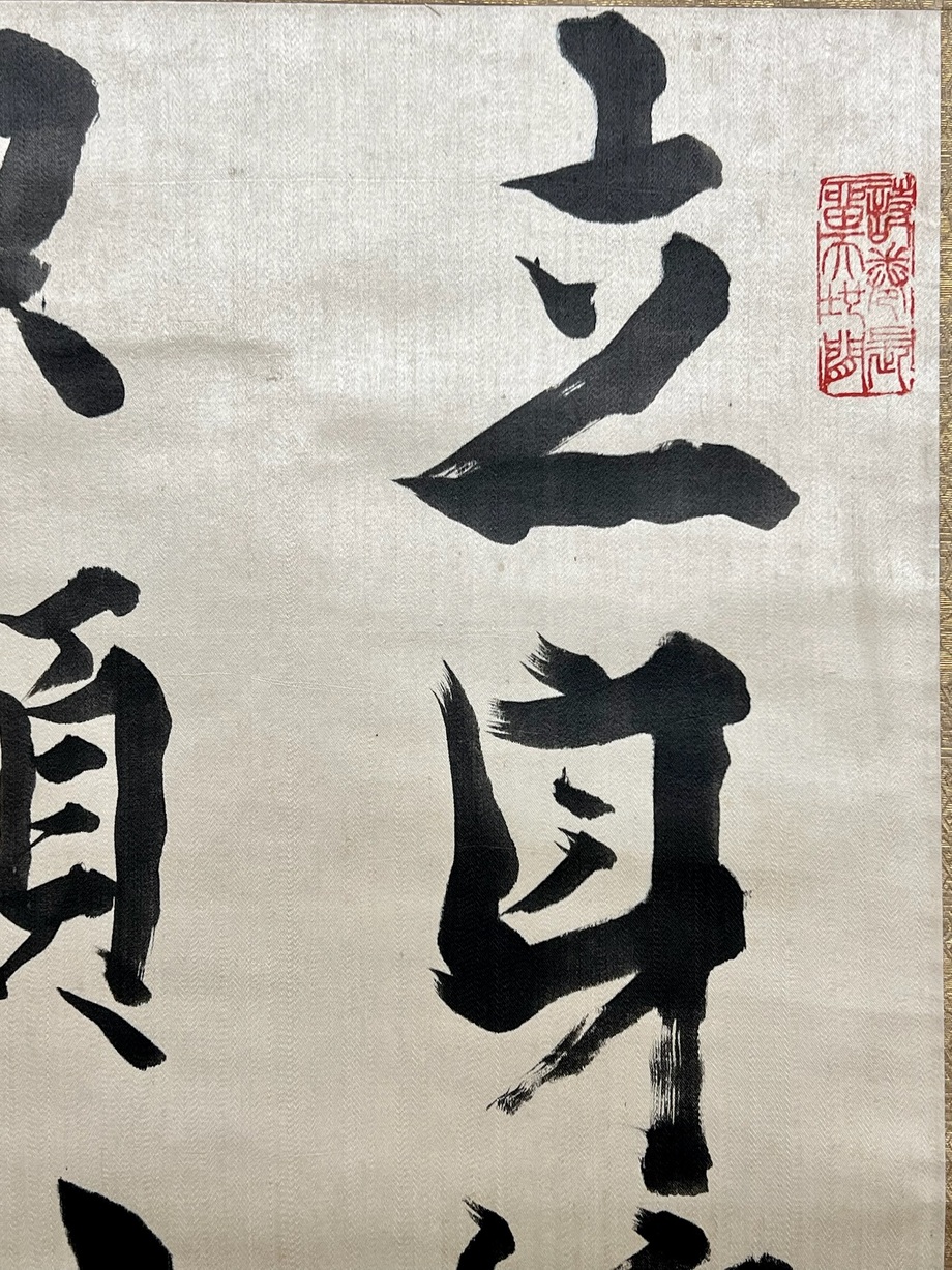 中国の経書『孝経』の開宗明義章に見える一節が揮毫されています。立派な人物となって親の名を高めることこそが、最終的な孝行であることを示す言葉です。