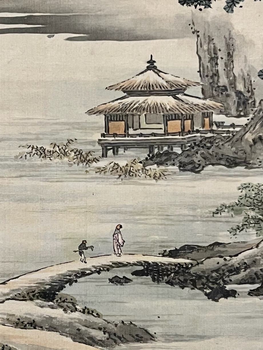 もと頴川美術館に所蔵され、現在は京都国立博物館に所蔵されている狩野元信 真山水図を臨模した作品です。