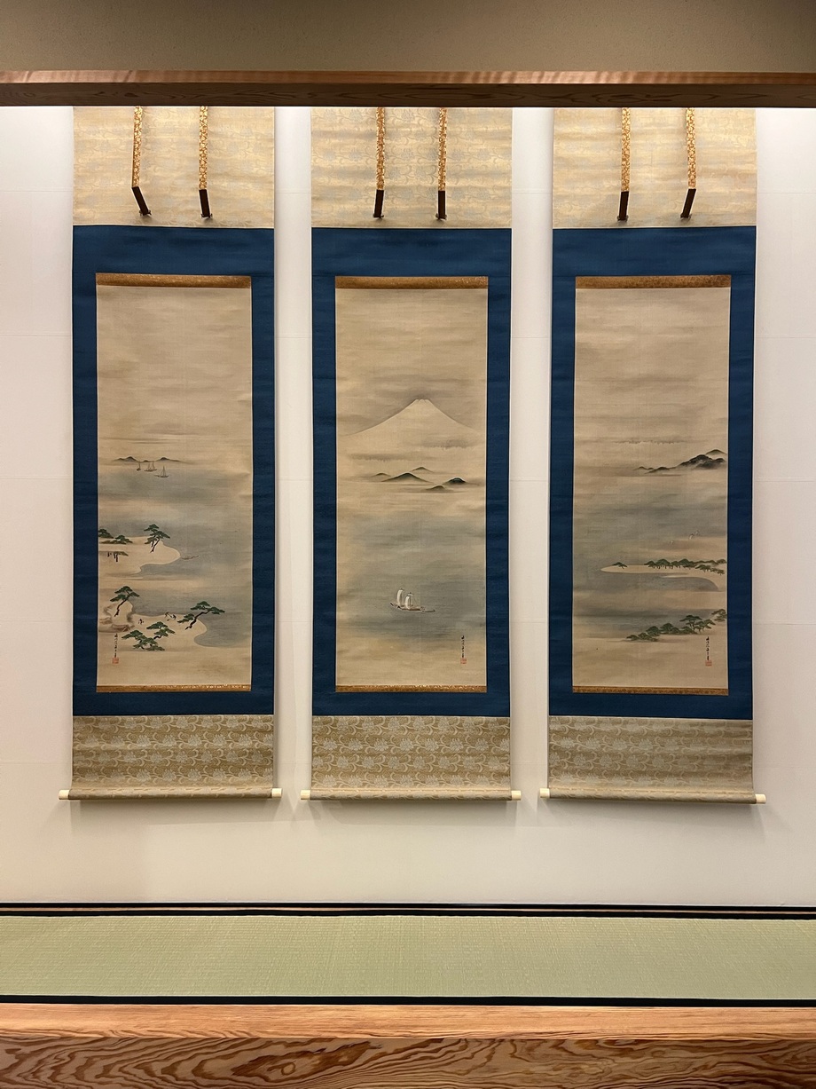 当時の大名家にとって、この絵のような三幅対は、晴れの日の床の間を飾る必須のアイテムだったことでしょう。
