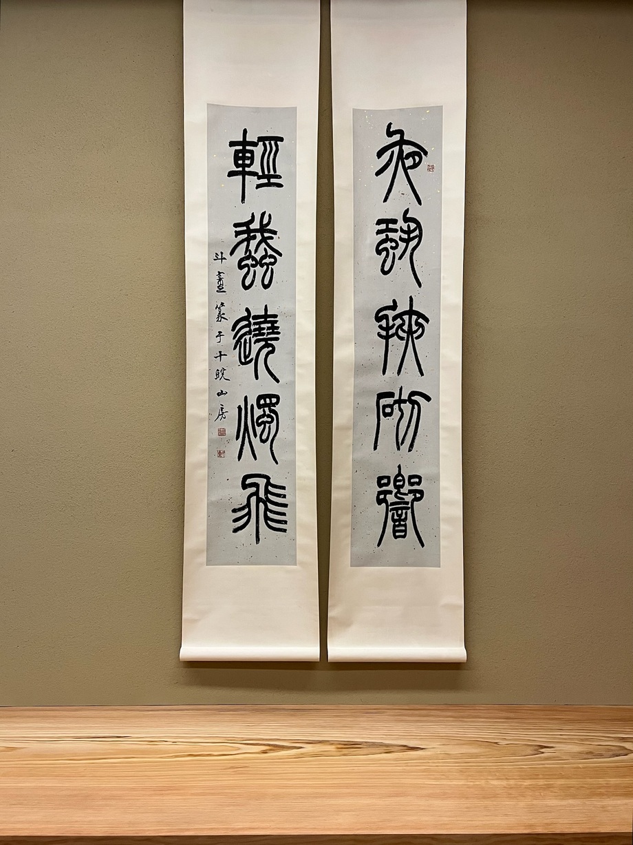 掛軸 紙本 各133,7cm×26cm(総丈各201cm×39,5cm)